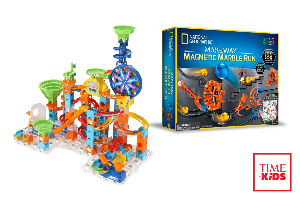 Put your scientific mind to work with one of these contraptions. The Marble Rush Ultimate Set, by VTech, sends marbles rolling along tracks and ramps, around a lighted cone, and out of a cannon. Color-coded parts make the paths easy to assemble. For even more-high flying fun, try the National Geographic Makeway Magnetic Marble Run. Magnetic pieces let you build marble runs on vertical surfaces, like whiteboards and refrigerators. The set comes with a learning guide. It explores scientific concepts such as energy, gravity, and Newton’s laws of motion.
