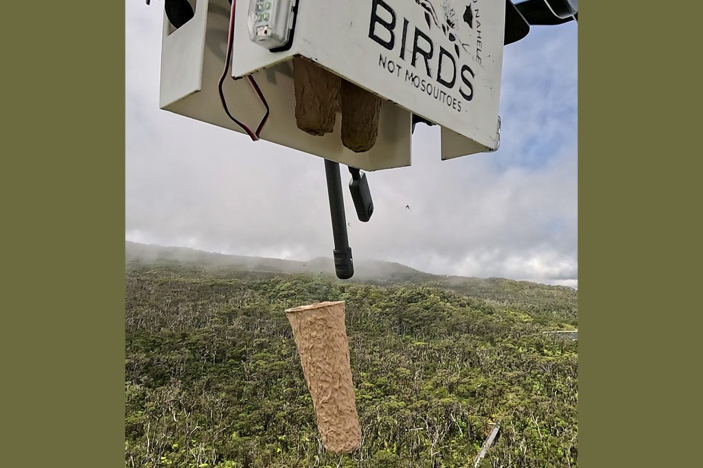 Y ahora, los conservacionistas están liberando mosquitos en el bosque con drones. Knox llama a esto un “gran avance”. Cuando comenzó el proyecto mosquito, en 2023, los helicópteros eran el único medio disponible. “Ha sido un largo camino para llegar aquí, con muchos experimentos y pruebas”, dice. “Pero en este momento, tenemos un sistema que puede volar en estos entornos difíciles”. Además, los drones son más silenciosos, cuestan menos y permiten una mayor flexibilidad con el tiempo. Desde abril, Knox ha estado utilizando tecnología de drones para ayudar a lanzar medio millón de mosquitos a la semana.