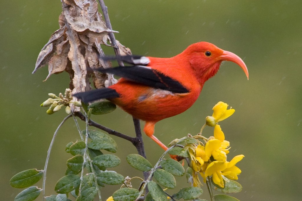 ¡DETECTADO! Un mielero escarlata, una vez común en Hawái, ahora es una vista más rara.