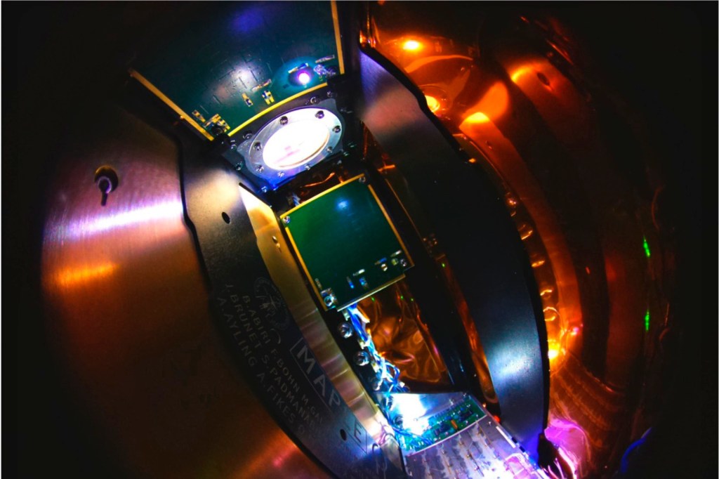 CLOSER LOOK This photo shows the inside of MAPLE, the device that directs energy from the spacecraft to Earth.