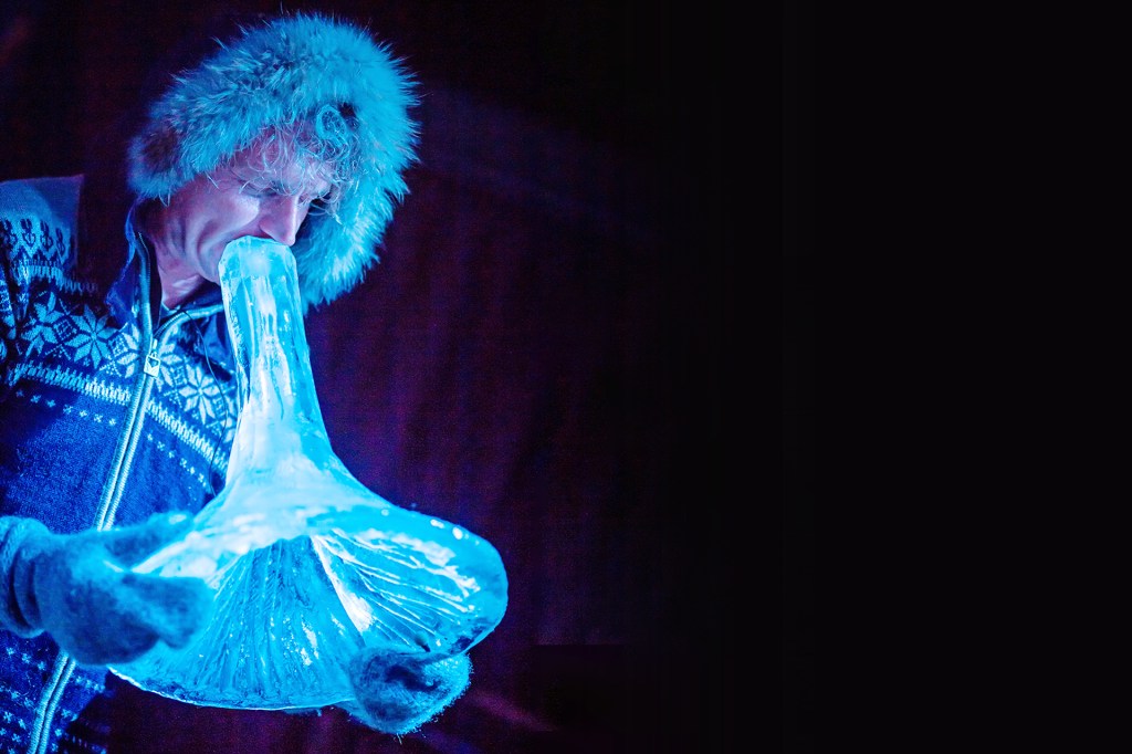 “Many people ask that question,” Isungset says. “If the horn were made out of metal, they would get stuck completely. [With an ice horn,] I might get frostbite on my lips.” His solution is to place a small piece of leather on the horn’s mouthpiece. “It’s the only part of the instrument that is not made of ice,” he says.