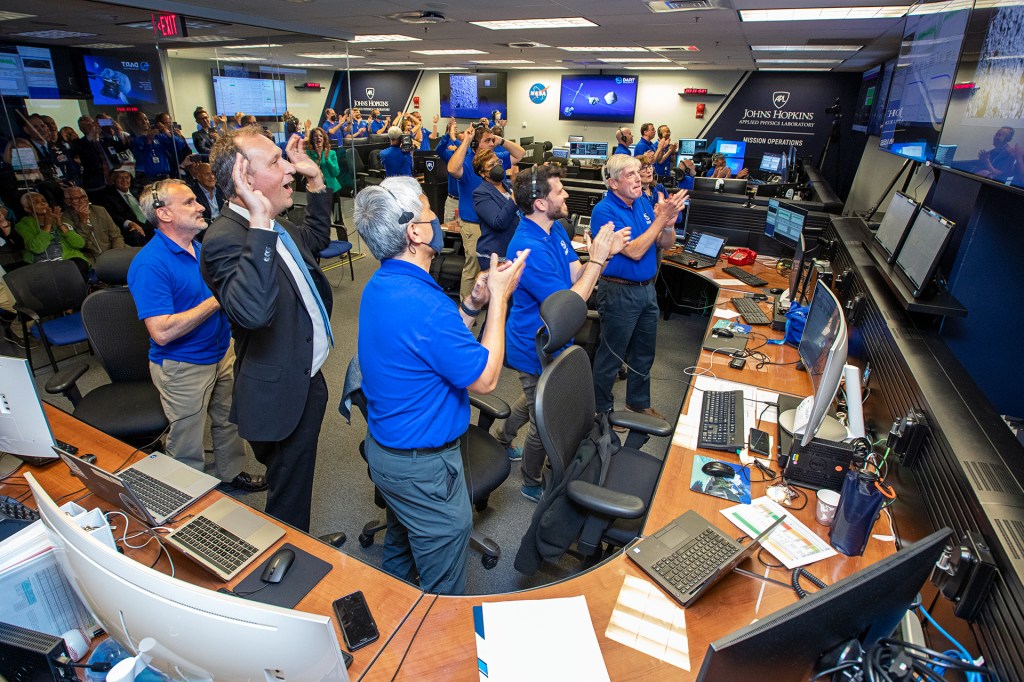 ¡ÉXITO! El equipo de comando de DART celebra mientras la nave espacial golpea su blanco el 26 de septiembre.