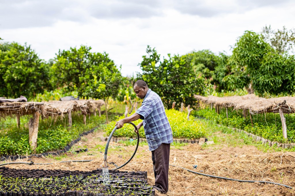 DEJA QUE CREZCA Un hombre riega árboles jóvenes en un vivero en Kenia. Los árboles se plantarán en granjas.