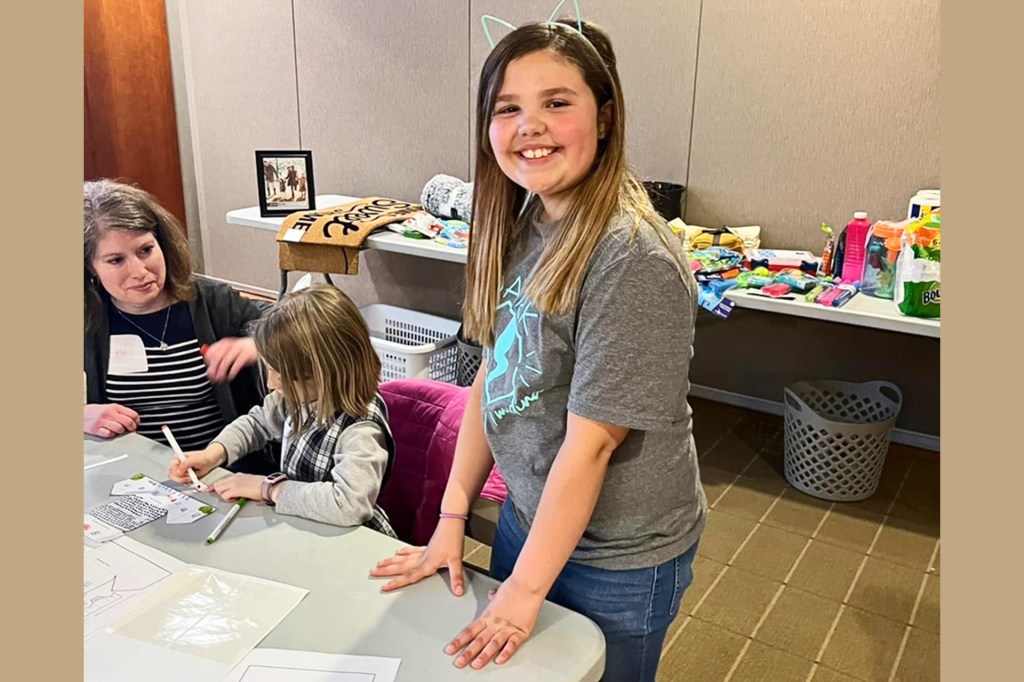 The first Saturday of every month is distribution day at the personal care pantry. Audrey, now in seventh grade, took the class project a step further by volunteering on that day with her mom. “She just has such a big heart and wanted to see it through to the end,” Rubino says.