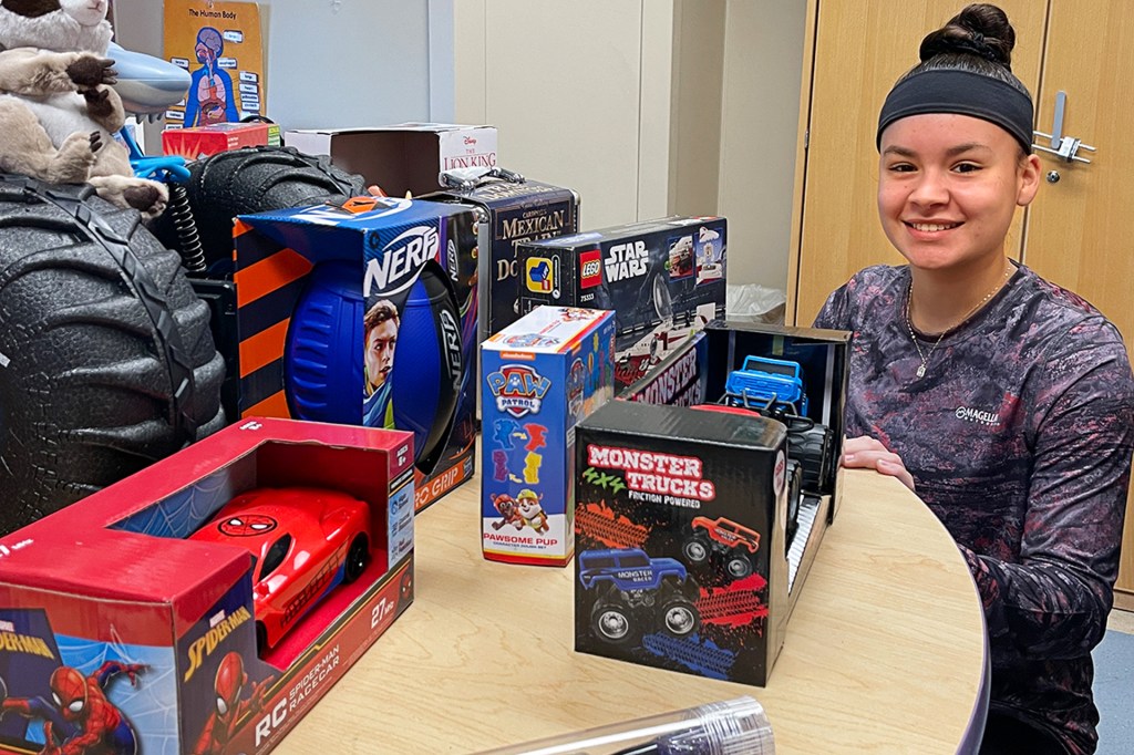 LISTOS PARA DONAR En diciembre de 2023, la pila de regalos donados por Jordyn está lista para los pacientes del hospital.