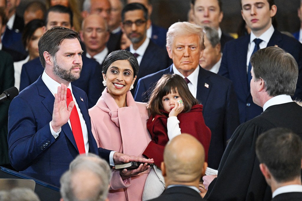 También el 20 de enero, J.D. Vance prestó juramento como vicepresidente. Prestó juramento al cargo junto a su esposa, Usha, y sus tres hijos.