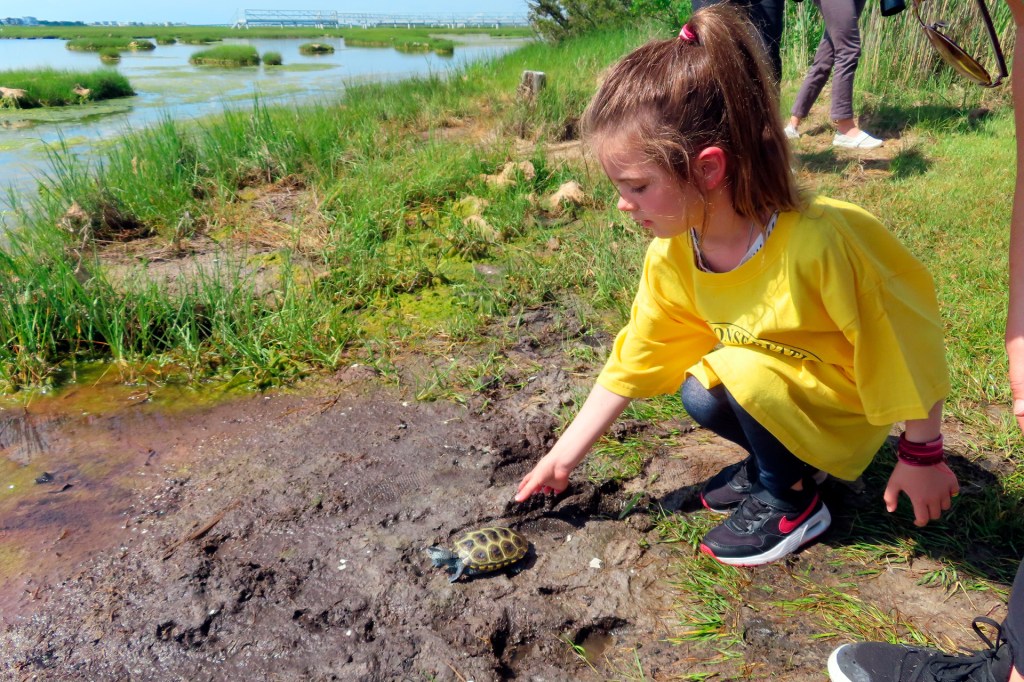 A kindergartner in Stone Harbor, New Jersey, releases a baby turtle on June 8. Her class released 17 turtles that day. The turtles were raised from eggs. These were rescued from turtles hit by cars. The rescue program is run…