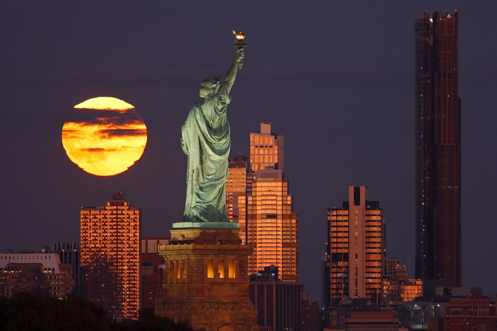 A full moon appears behind the Statue of Liberty, in New York City, on October 9. Two days later, the statue’s crown reopened. It had been closed since March 20…