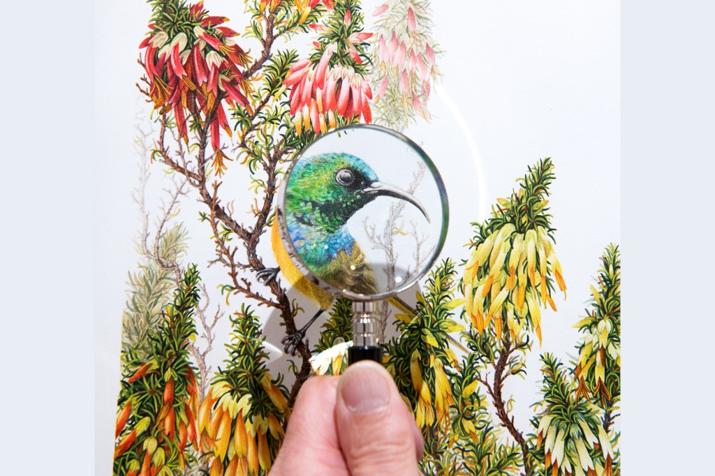 Los amantes del arte y la naturaleza pueden pasear por un mundo de dibujos coloridos en el Grootbos Florilegium, en la Reserva Natural Privada de Grootbos, en Sudáfrica. La galería cuenta con cerca de 250 dibujos botánicos. Celebran las plantas sudafricanas y sus polinizadores, como insectos y aves. —Por Elaine Glusac