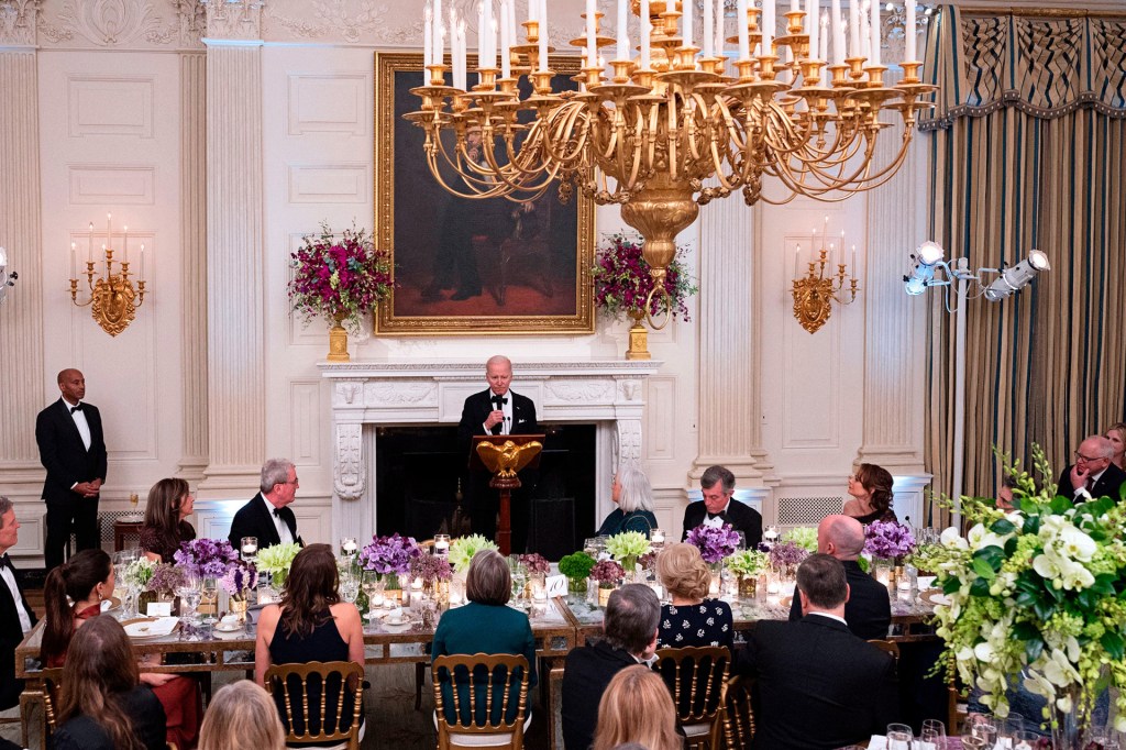 This is the State Dining Room. President Biden invited state governors and their spouses to dinner.