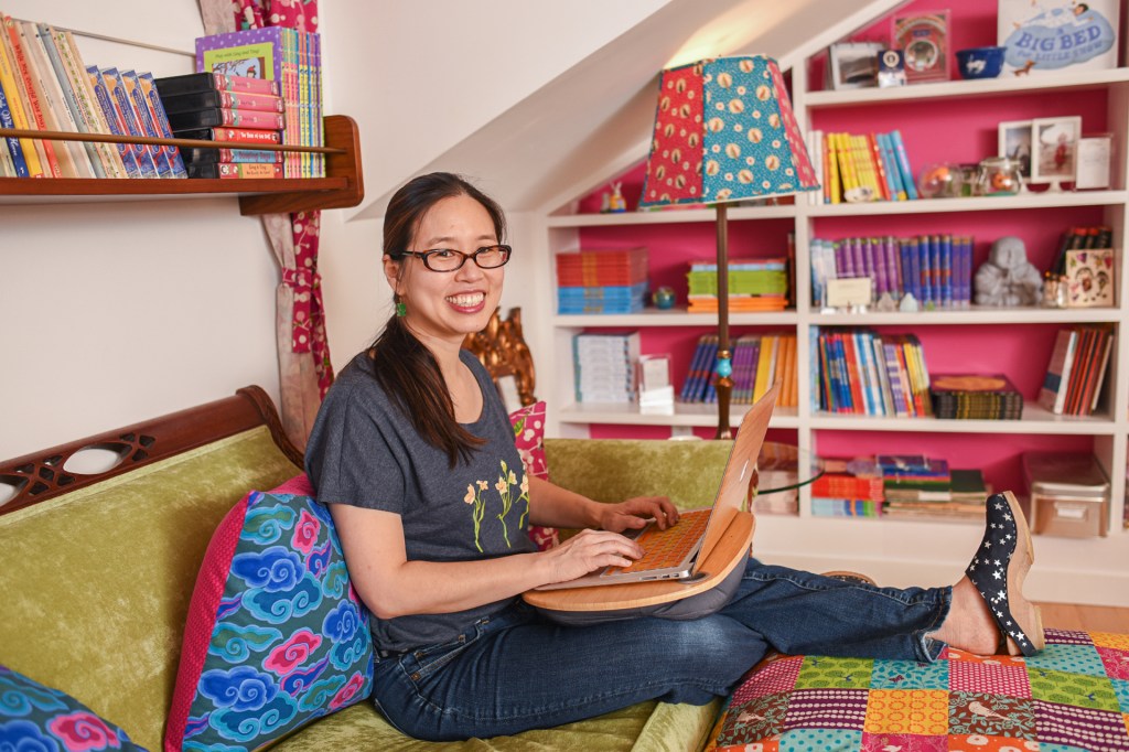 DANIELLE TAITLos libros de Lin se basan en su vida y su familia. A Big Mooncake for Little Star es uno de ellos. Su hija fue su inspiración.