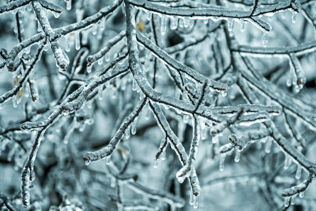 Rain can turn to ice when it lands. This is called an ice storm. This tree looks as if it is coated in glass.