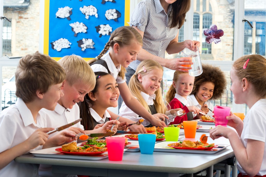 Kids go here to eat lunch. Cafeteria workers prepare food. Some schools serve breakfast too. Yum!