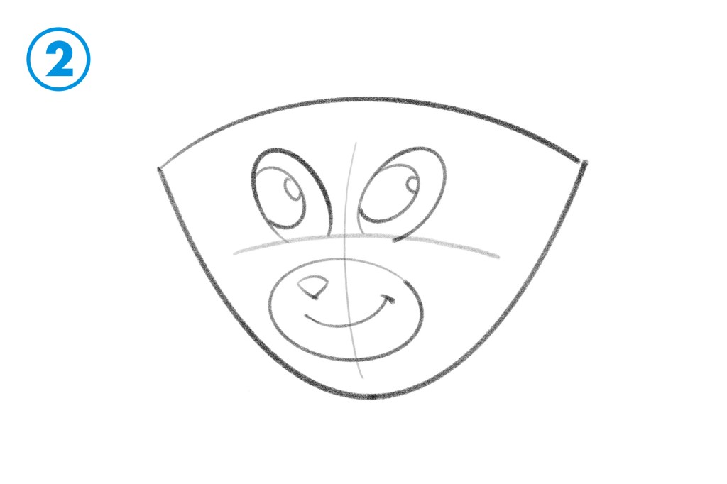 2. Make some ovals for the eyes and mouth. Add a triangle nose and a smile.
