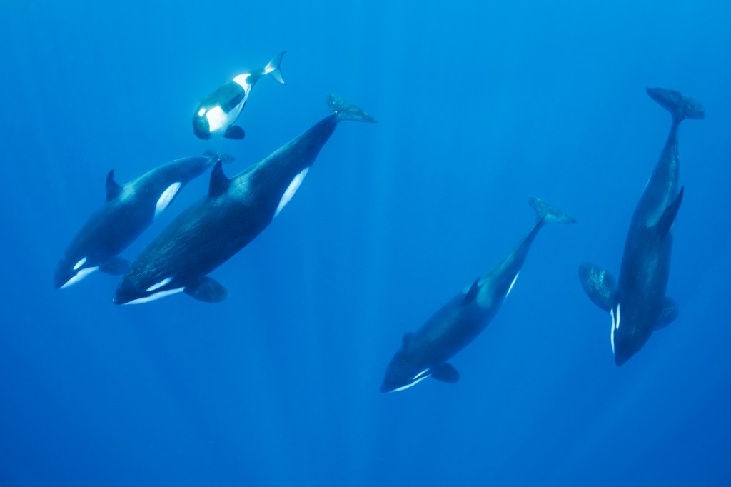 Orcas are social. Families live and hunt together. These groups are called pods.