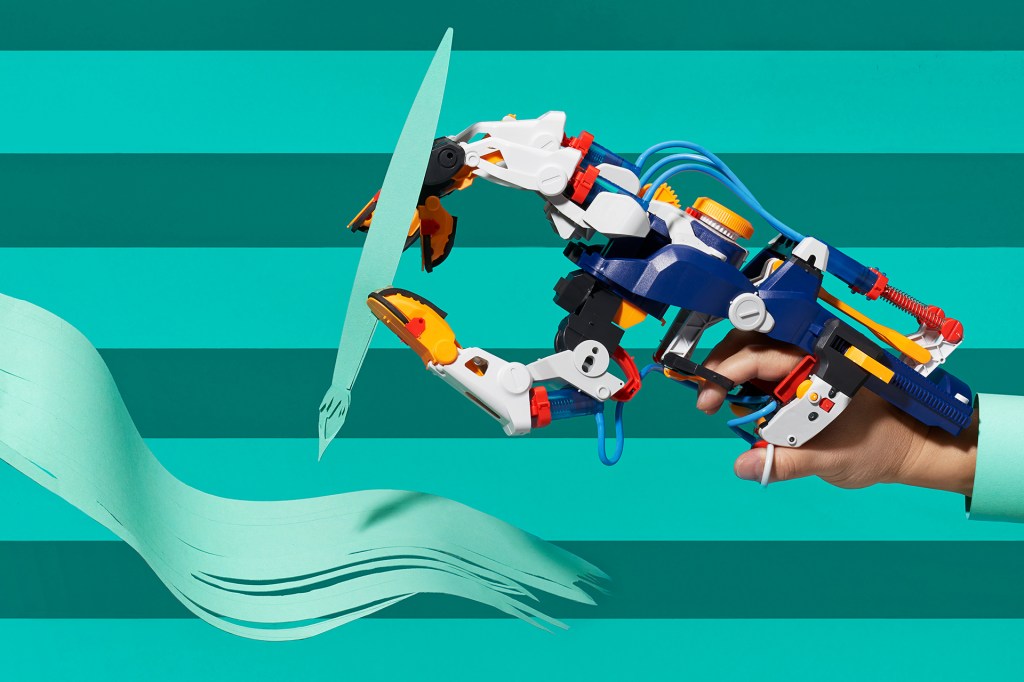 Hand is a robotic hand. You build it from a kit. Its fingers move with yours. It does not use electricity. It uses plastic tubes filled with water.