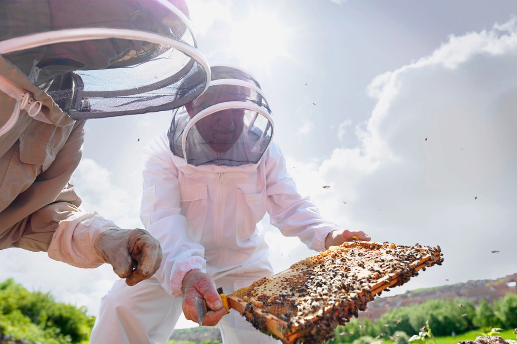 Beekeepers look after bees. They take the bees’ honey. Beekeepers wear special clothing. It protects them from bee stings.