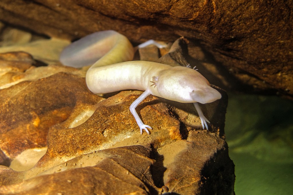 Olms are cave salamanders. They do not see well. But their other senses are strong. They can survive many years without food.
