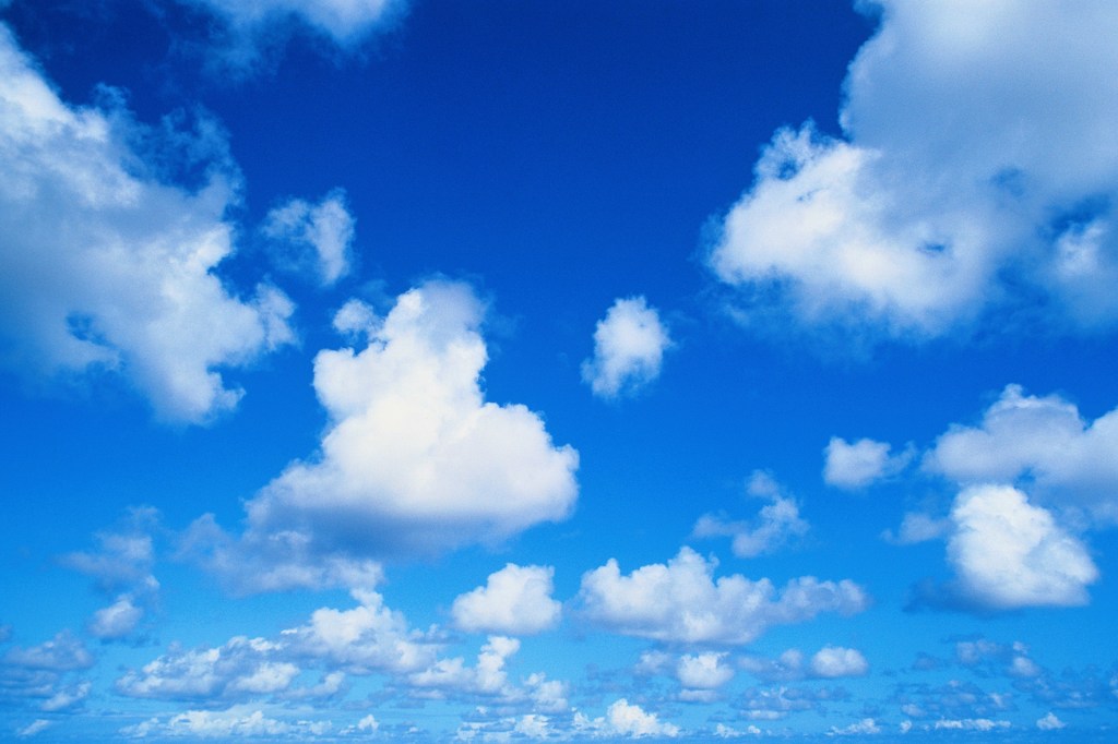 Cumulus clouds are seen on sunny days. They are puffy. They are fairly low in the sky.