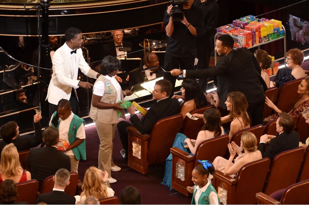 Girl Scouts went to the Oscars. That was in 2016. Scouts sold cookies to movie stars at the awards ceremony.