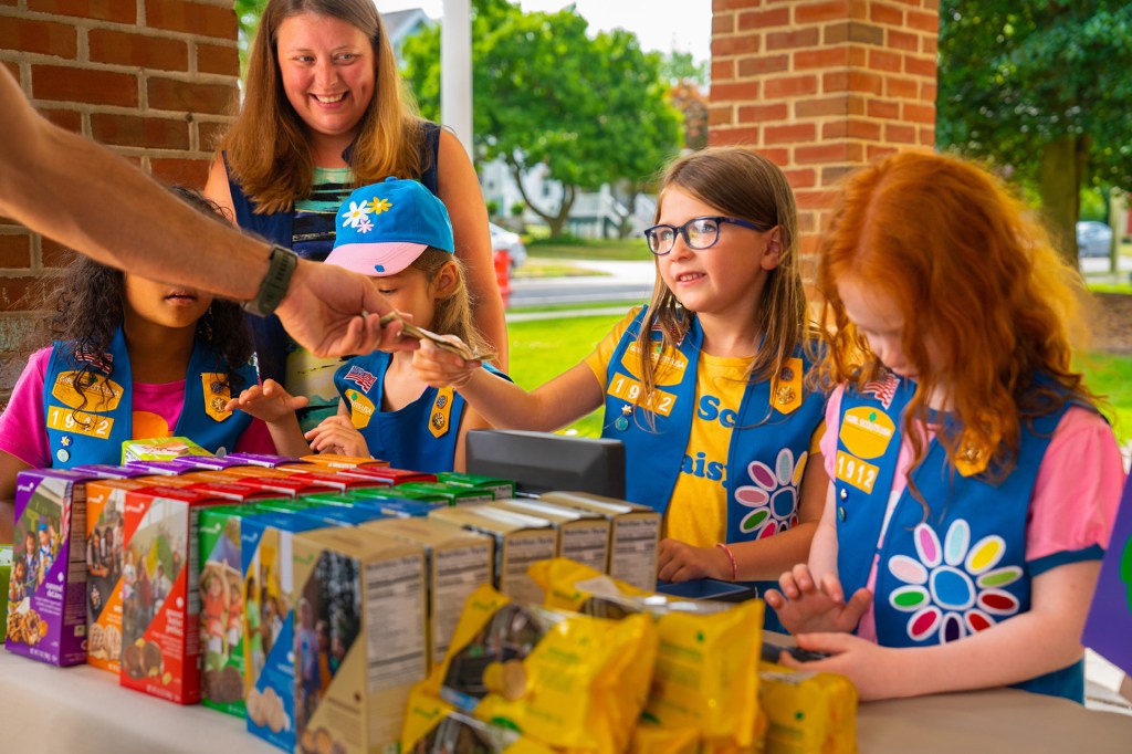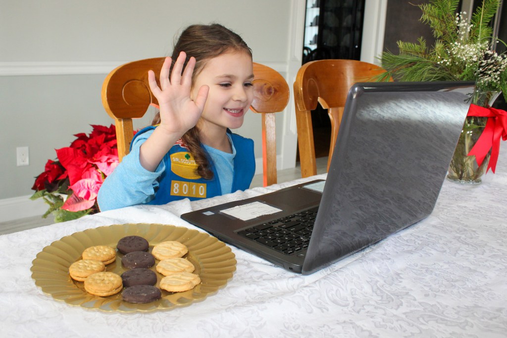 Some Girl Scouts sell cookies online. Customers visit a website. Friends and family far away can buy cookies.
