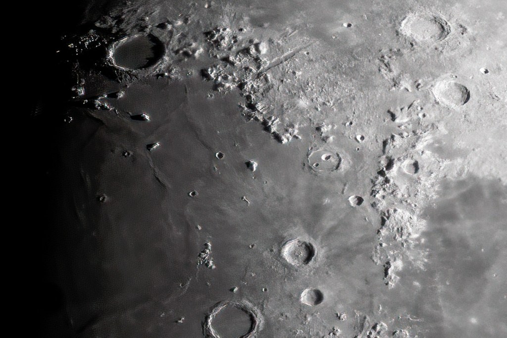It gets hit by smaller space rocks. That forms craters. The surface of the moon is rough and dusty. There is no wind or weather there.