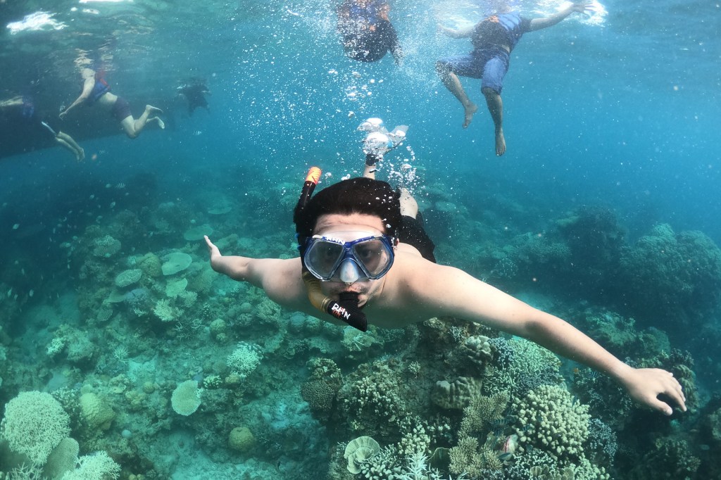 Tourists can snorkel or scuba dive near reefs. This reef is in Indonesia. The world’s biggest reef is in Australia. It is the Great Barrier Reef.