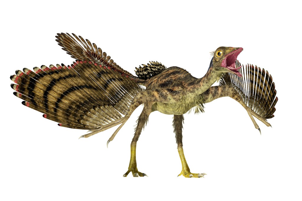 This is what the archeopteryx may have looked like. How do we know this? Paleontologists made a guess. They based it on fossils. But no one knows for sure.