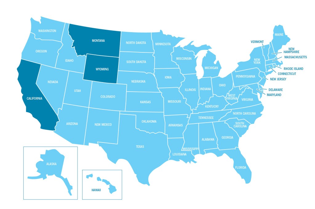 Look at the United States map. The states where the most dinosaur fossils have been found are California, Montana, and Wyoming.