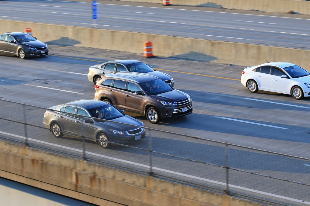 Cars travel on the road. They get around quickly. But they can carry only a few people.