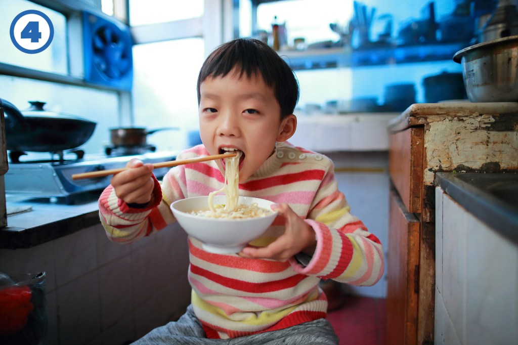 On birthdays, people eat a bowl of long noodles. You try to slurp