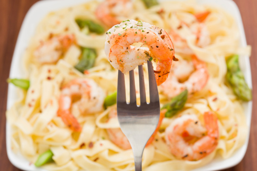 This fork has four prongs. You poke them into food to pick it up. You can also use a fork to scoop food.