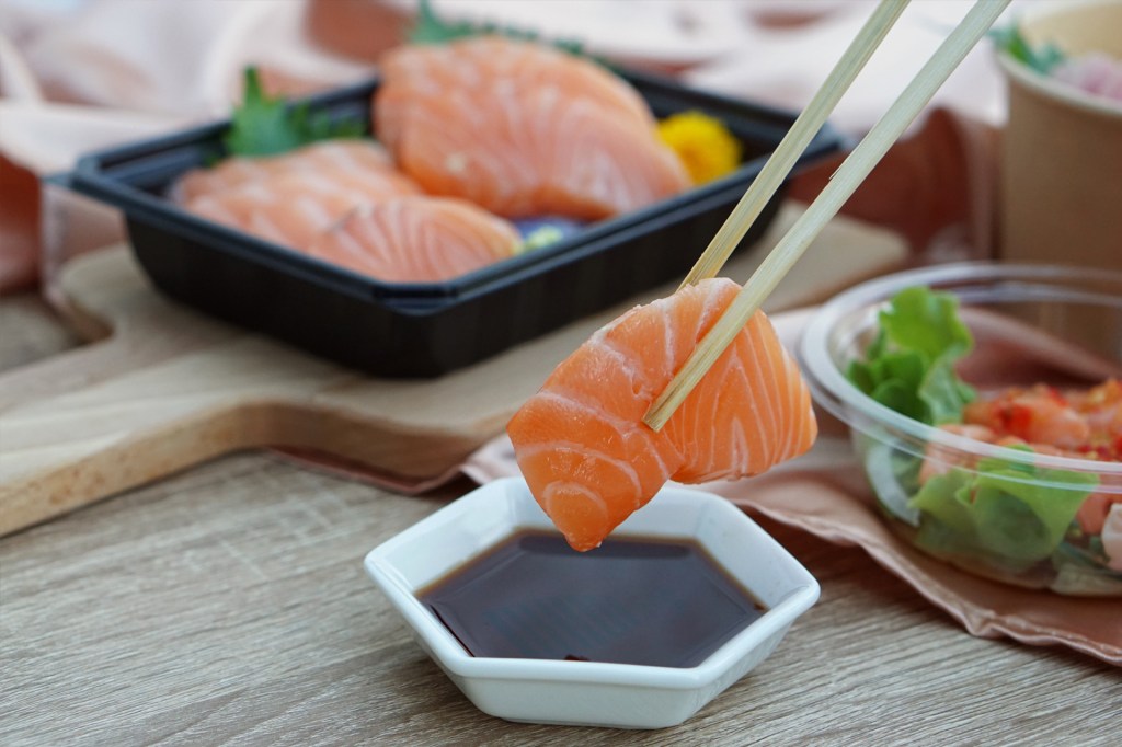 Chopsticks work together to grab food. They were developed in China about 5,000 years ago. Here you see them picking up fish.