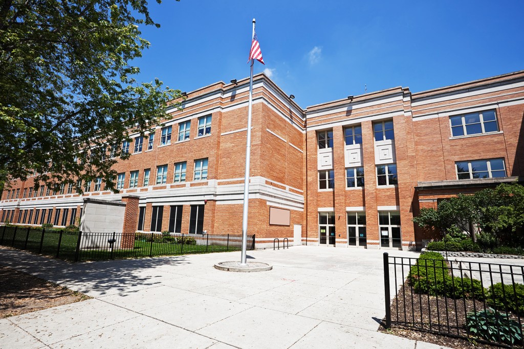 Schools are where kids go to learn. Big cities have many schools. Smaller towns have just a few.