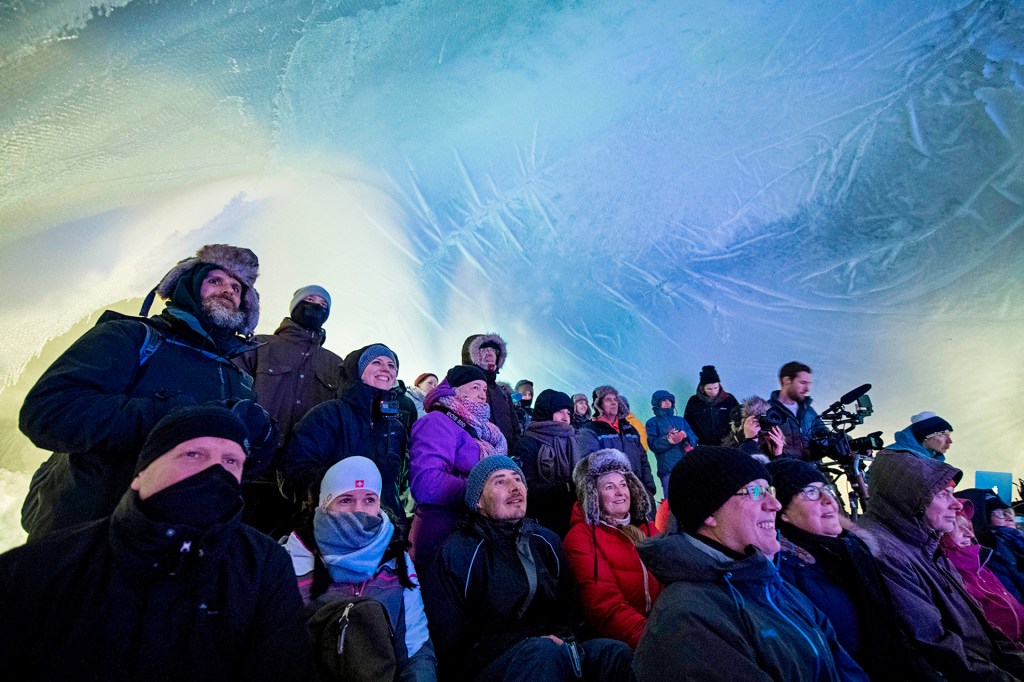 The Ice Music Festival happens in the winter. The temperature can drop below zero. Brr! Music fans must wear warm clothes.