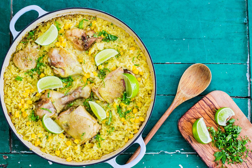 This is a chicken and rice dish. The chicken cooks with the rice. That gives it lots of flavor.