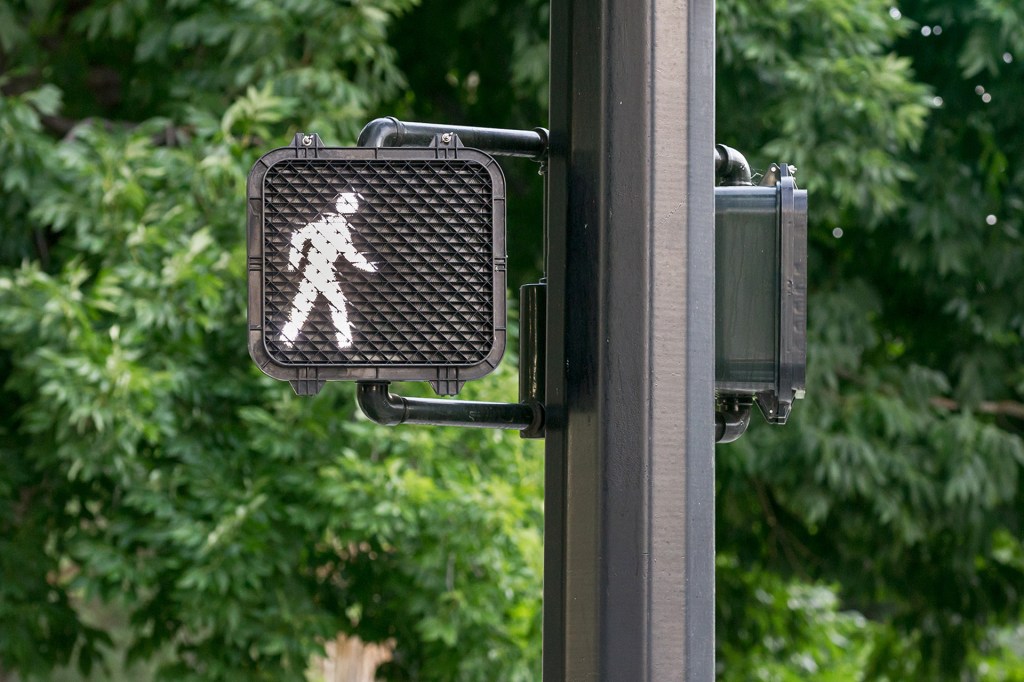 3. The sign changes. A person walking means it is safe to cross.