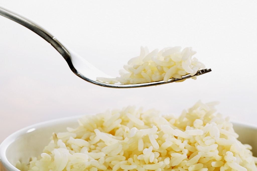 Forks have prongs. They can be used to spear food and pick it up. You can also use a fork to scoop up food. Here is a fork picking up some rice.