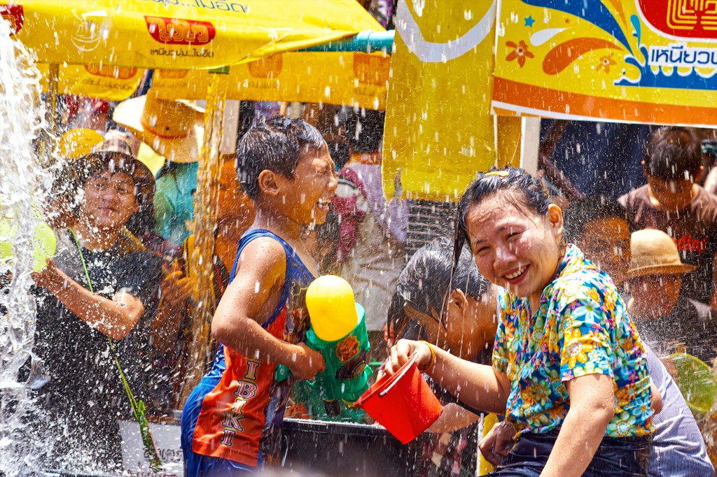 The Thai New Year is called Songkran. It is known for splashing water. People throw water to wash away the past year.