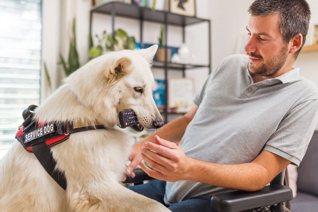 A service dog works for about eight years. It knows its job. It helps with what its owner needs.