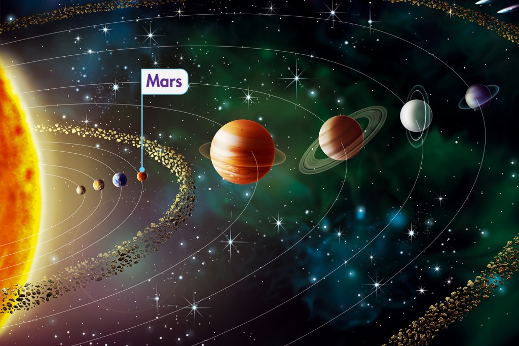 Mars is known as the Red Planet. Iron in its soil gives Mars a red color. Scientists have sent rovers to Mars. The rovers are looking for signs of life.