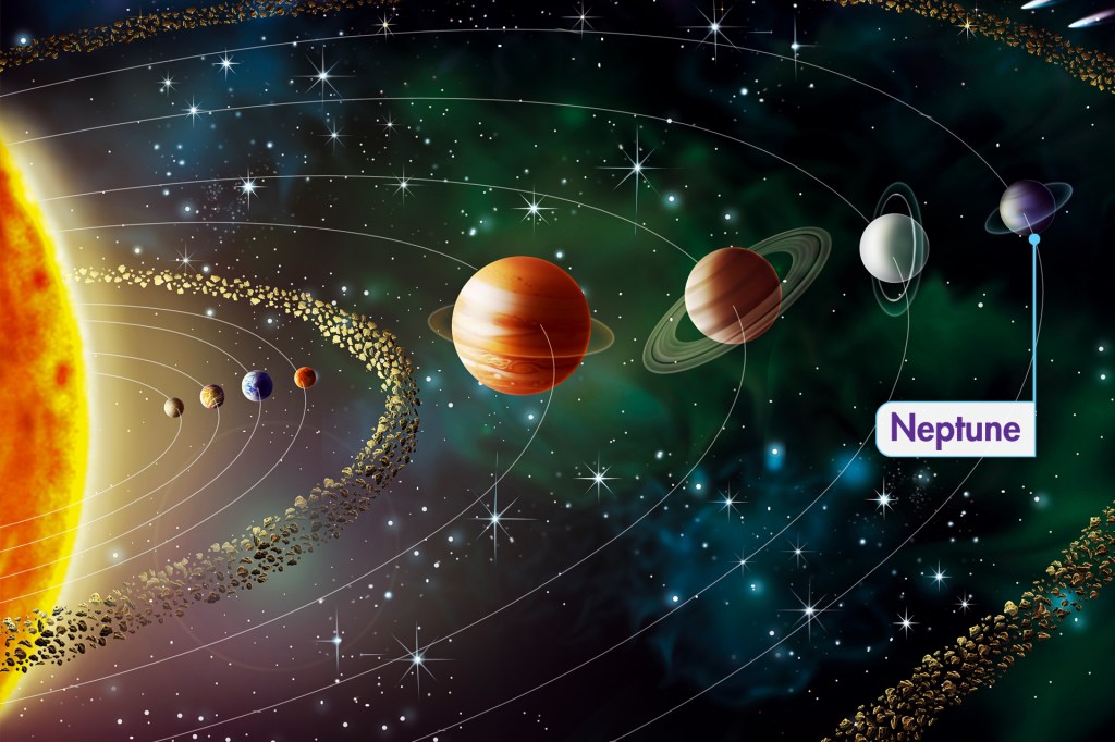 Neptune is the farthest planet from the sun. Like Uranus, it is a blue ice giant. This planet is cold, dark, and windy.