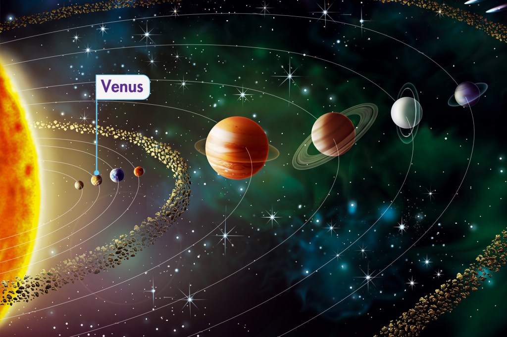 Venus is the hottest planet. It is surrounded by gas. The gas traps heat. Venus has active volcanoes. It can sometimes be seen without a telescope.
