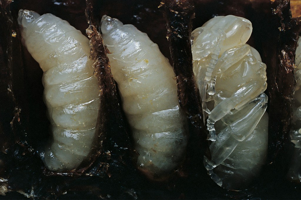 Some insects go through complete metamorphosis. They change form. Here are three examples. Bees Many bees make cocoons (above). Young bees are called larvas. They are wormlike. They spin a cocoon, like in the photo above. They spend a week…