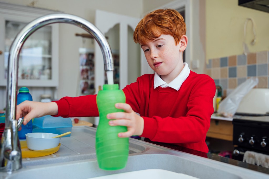 Buy things that can be used more than once. This water bottle can be used over and over.