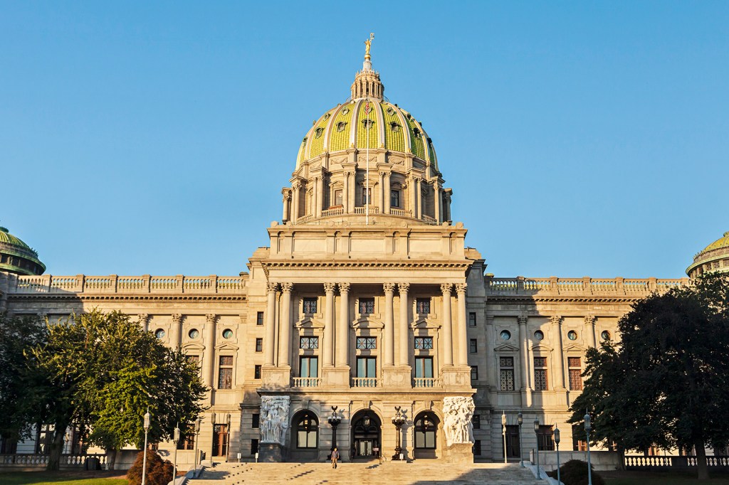 A governor leads a state government. He or she decides which laws the state should have. Most governors work in a state’s capitol building. This one is in Harrisburg, Pennsylvania.