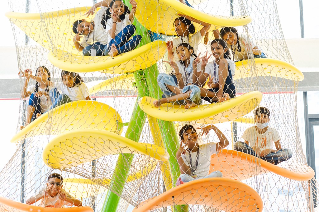 Los niños hacen las reglas en el Museo de las Soluciones. Está en India. Los niños pueden divertirse con las matemáticas y el arte. También hay un laberinto grande. Los visitantes pueden correr a través de él.