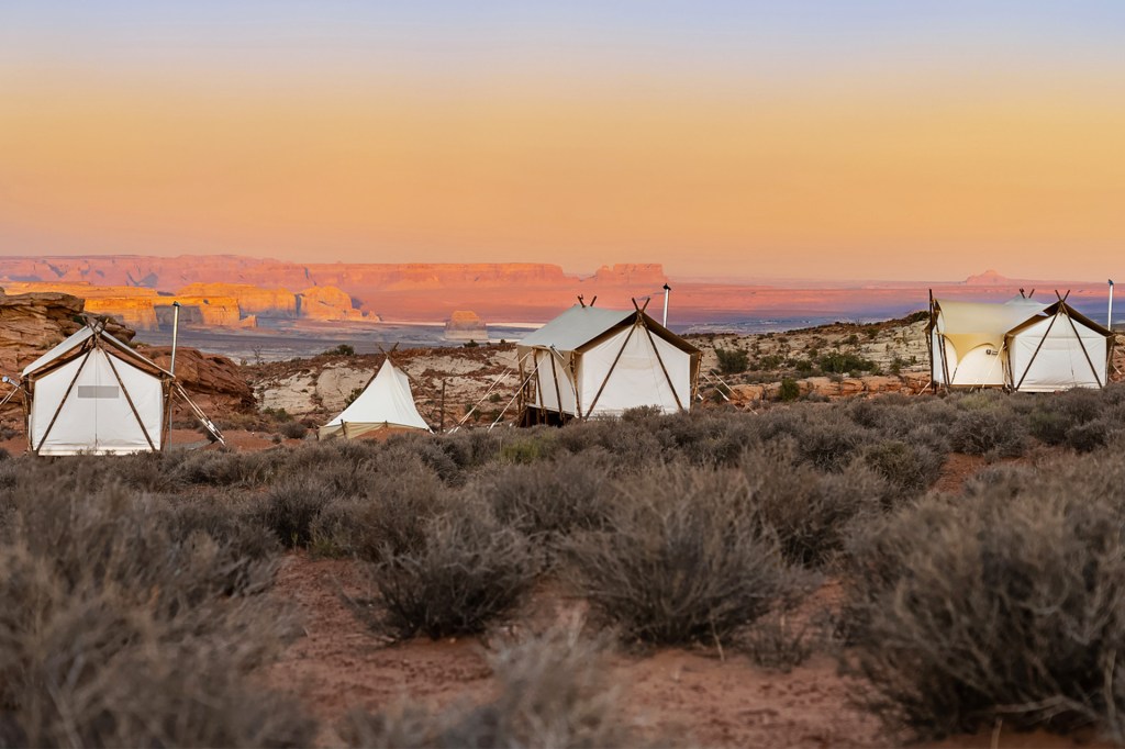 Under Canvas Lake Powell-Grand Staircase se encuentra en Utah. Los huéspedes duermen en carpas grandes. Oscurece mucho por la noche. Allí, es fácil ver las estrellas.