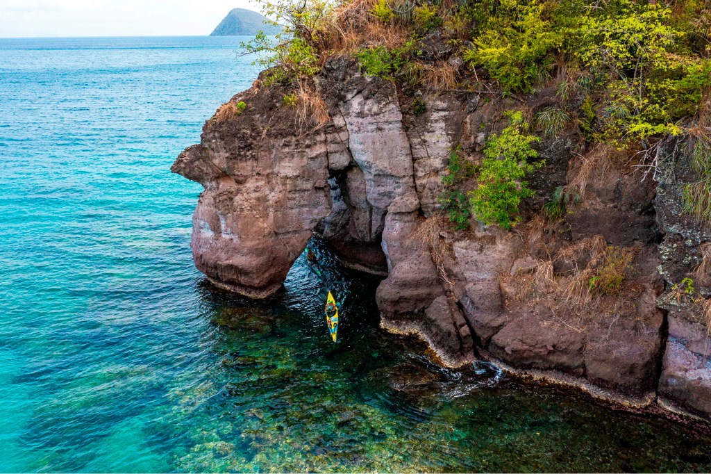 Dominica is an island. It is in the Caribbean Sea. It has waterfalls, hot springs, and volcanoes.