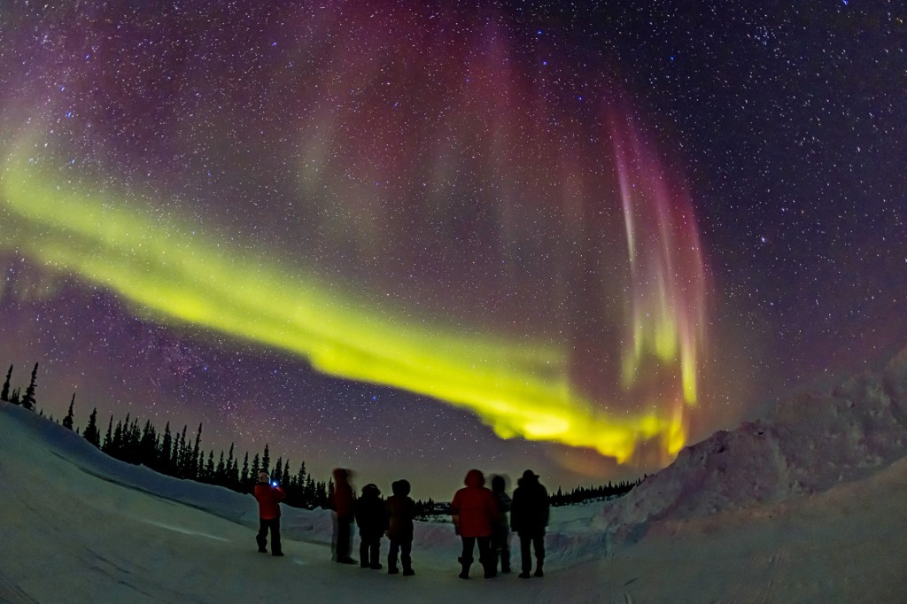 Want to see the northern lights? You can see them in Churchill. It is a small town in Canada. It also has polar bears.